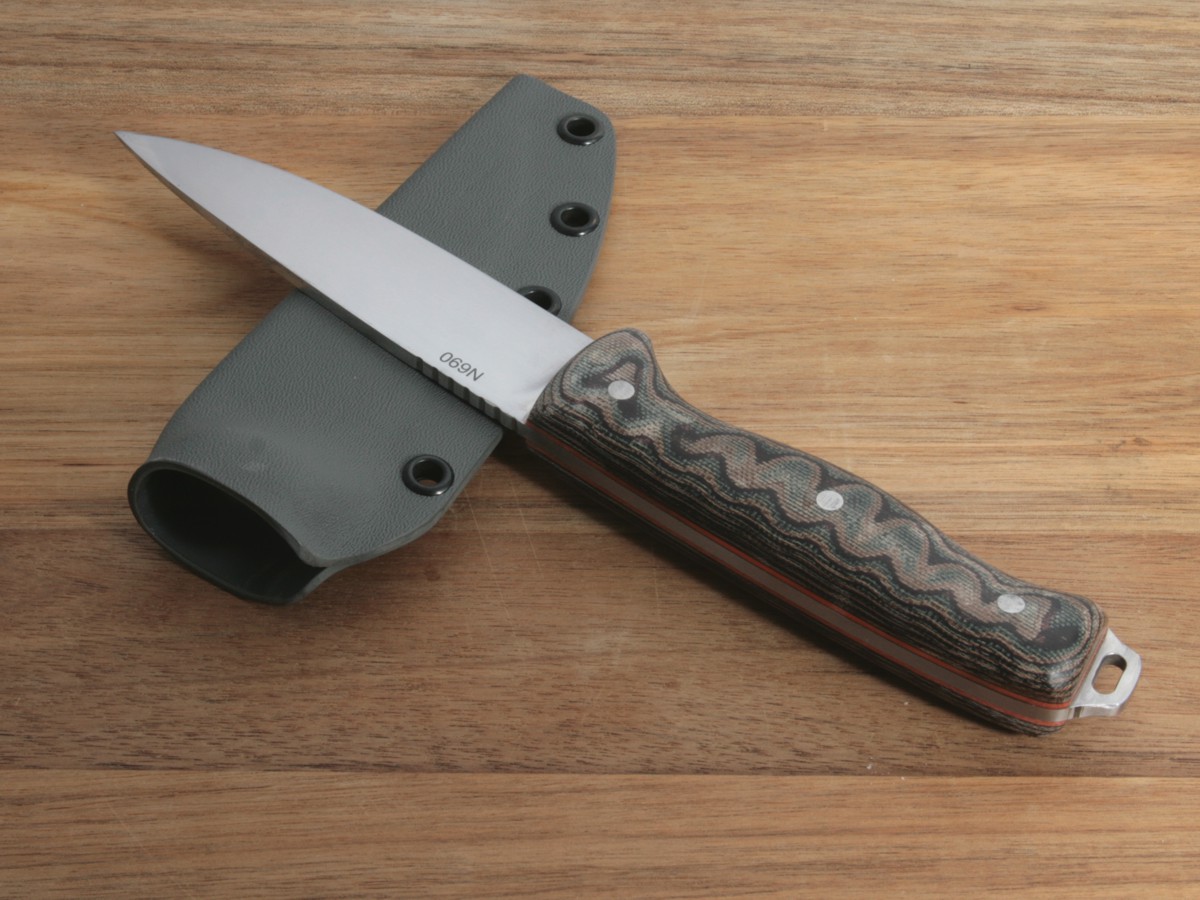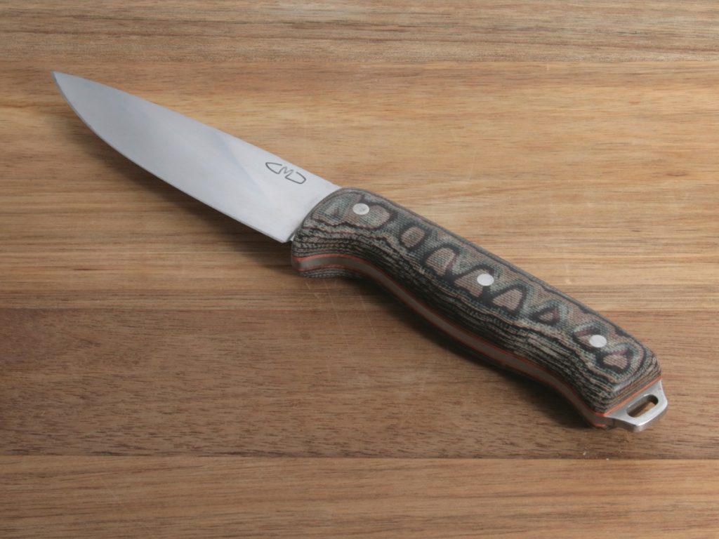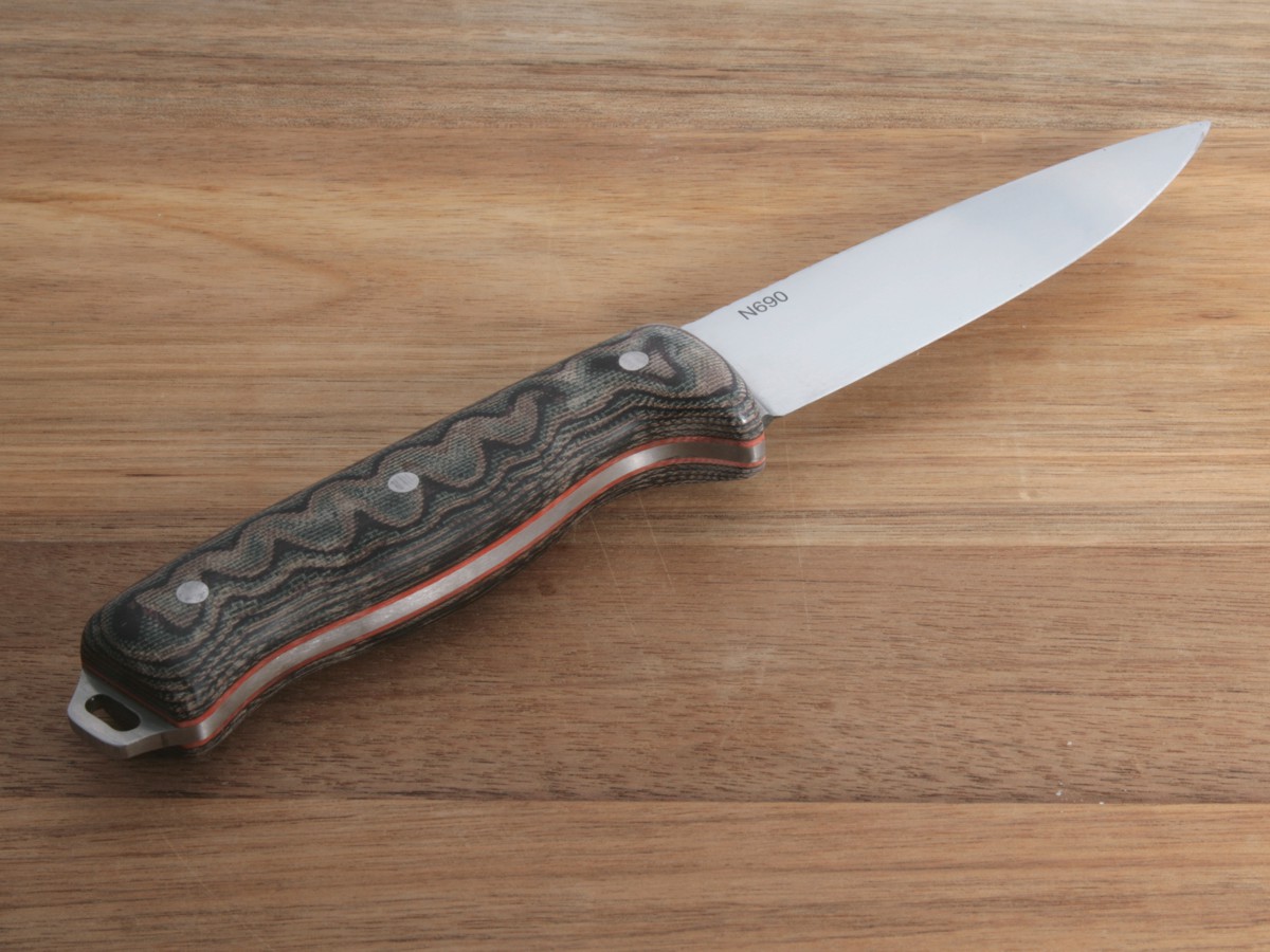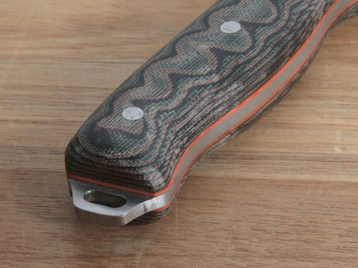 Ein universelles Messer für alle Outdooraktivitäten. Eignet sich sehr gut zum Angeln. Der Griff ist aus Python-Micarta mit einem orangem Liner aus G10 und am Griffende befindet sich eine Langlochöse.