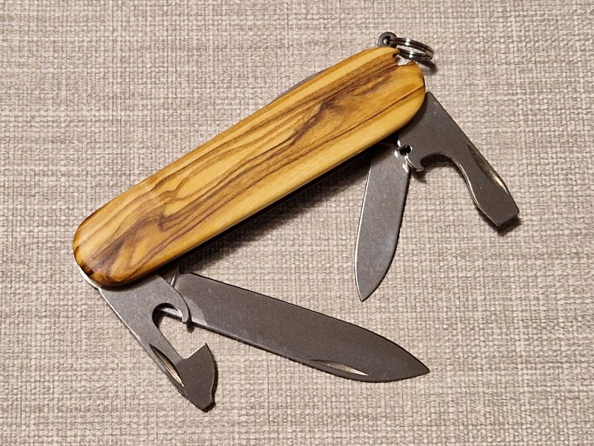 Griffschalen aus edlem Olivenholz haben eine sehr interessante Maserung. Die Griffschalen können relativ einfach gegen die Kunststoff-Griffschalen ausgetauscht werden.