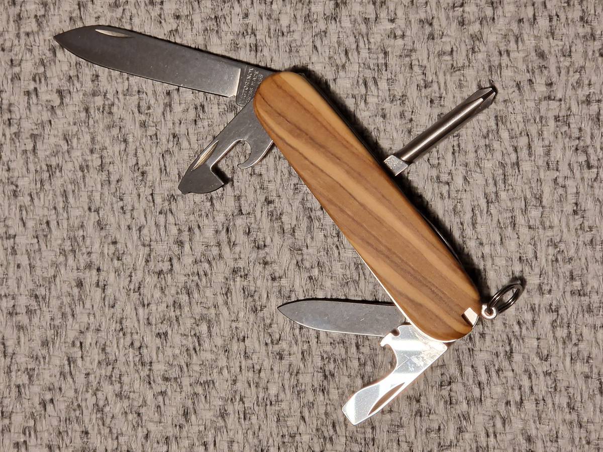 Da die originalen Griffschalen recht langweilig aussehen, habe ich die Griffschale aus edlem Olivenholz hergestellt. Die Griffschalen können relativ einfach gegen die Kunststoff-Griffschalen ausgetauscht werden.