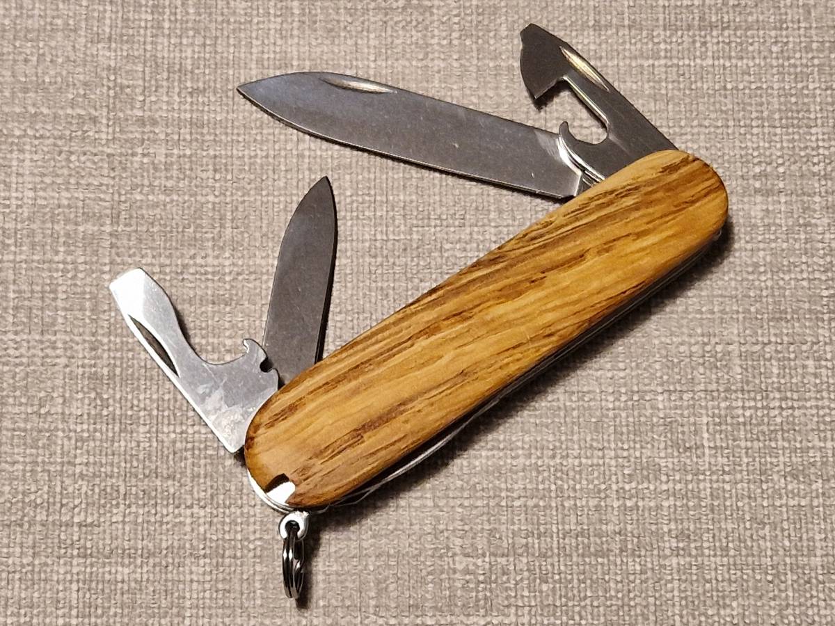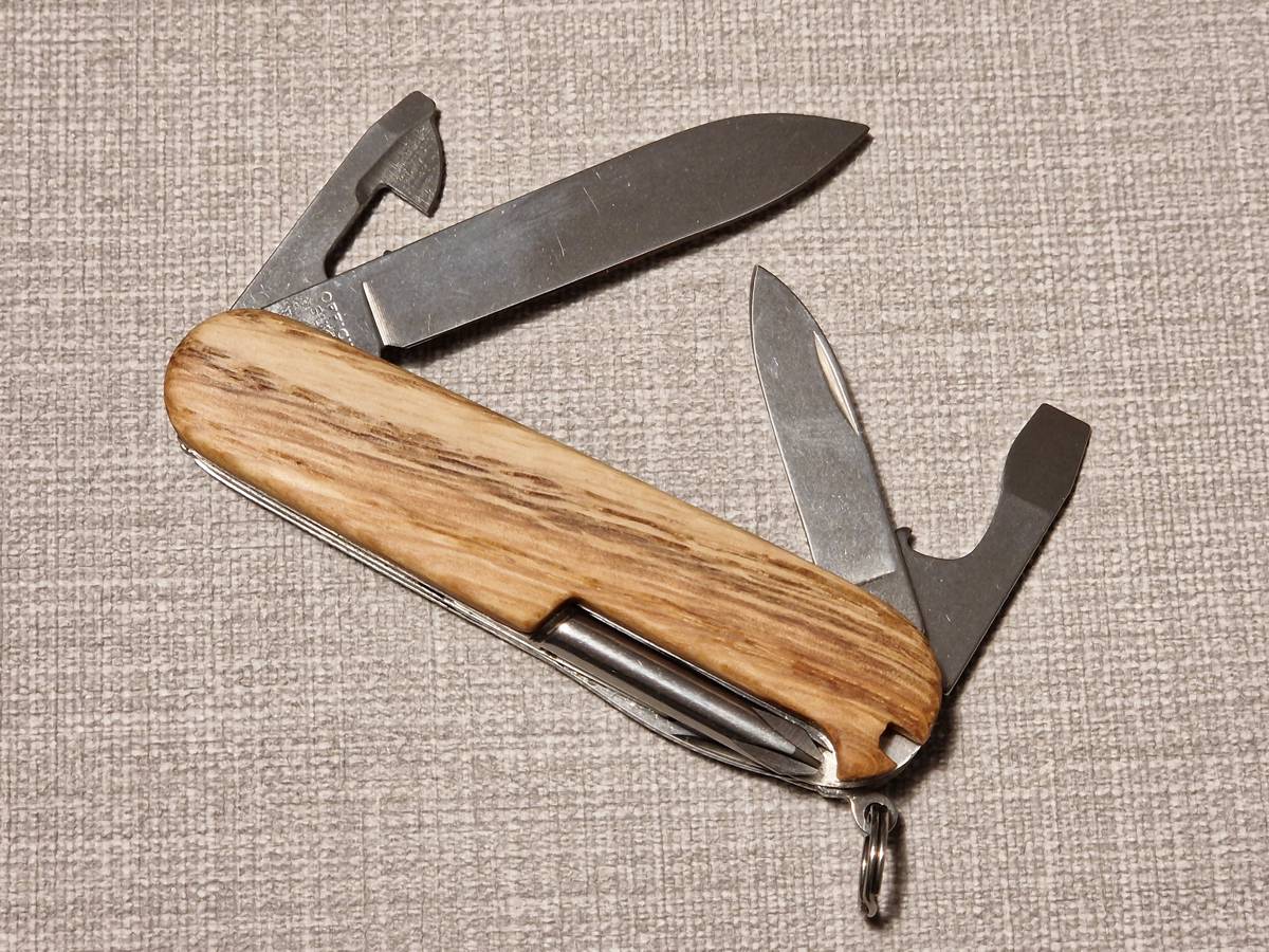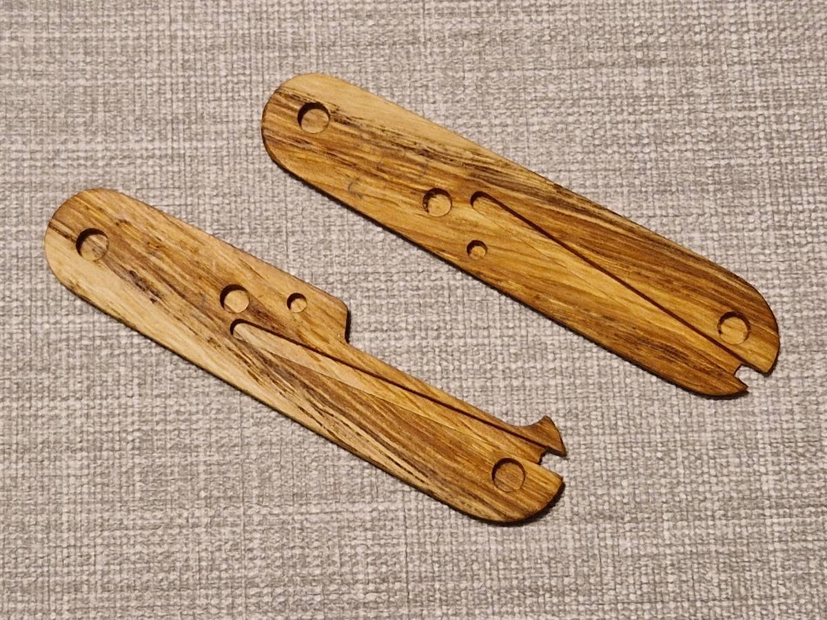 Die gezeigten Griffschalen sind aus Eichenholz gefertigt und machen aus einem einfachen Taschenmesser ein edles Stück. Die Griffschalen können relativ einfach gegen die Kunststoff-Griffschalen ausgetauscht werden.