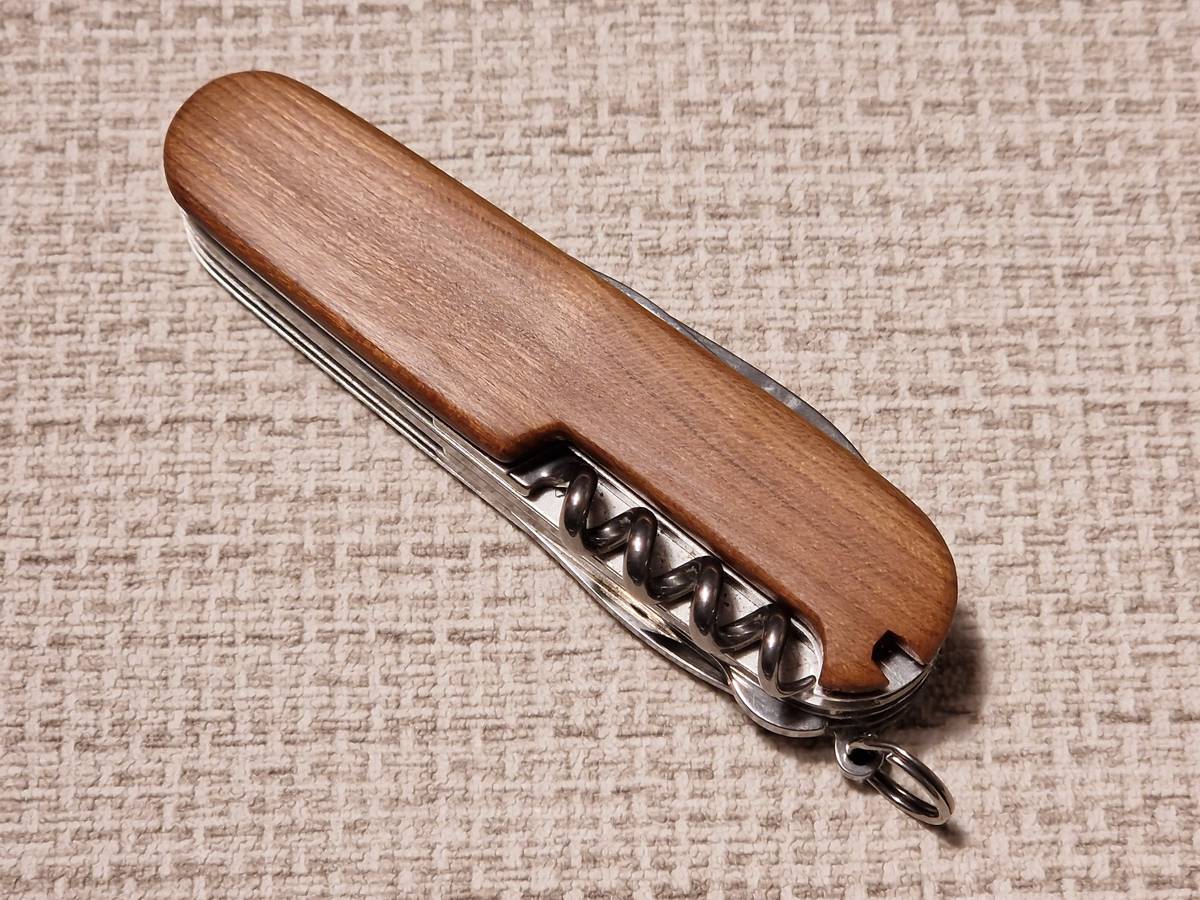 Die Griffschalen aus Zwetschgenholz haben eine sehr schöne warme Farbe. Dadurch wird aus dem Taschenmesser ein ganz individuelles Stück. Die Griffschalen können relativ einfach gegen die Kunststoff-Griffschalen ausgetauscht werden.