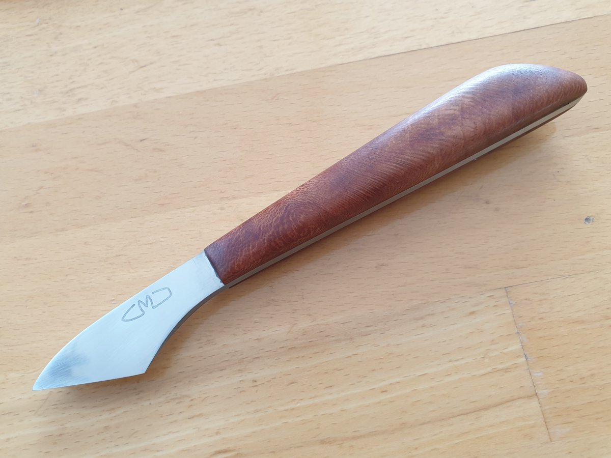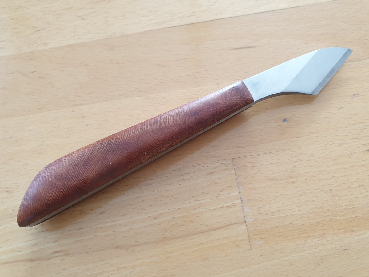 Ein Bastelmesser für kleine Schneidaufgaben. Der nicht rostfreie Silberstahl wurde auf 64 HRC gehärtet und hat ein sehr feines Stahlgefüge. Der Griff aus Platane macht das Messer zu einem edlem Schneidwerkzeug.
