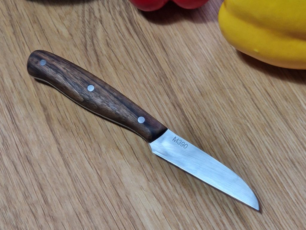 Ein hochwertiges Kneipchen aus dem High-End-Stahl Böhler M390, der im pulvermetallurgischen Verfahren hergestellt wird und somit eine sehr feine Gefügestrucktur besitzt.