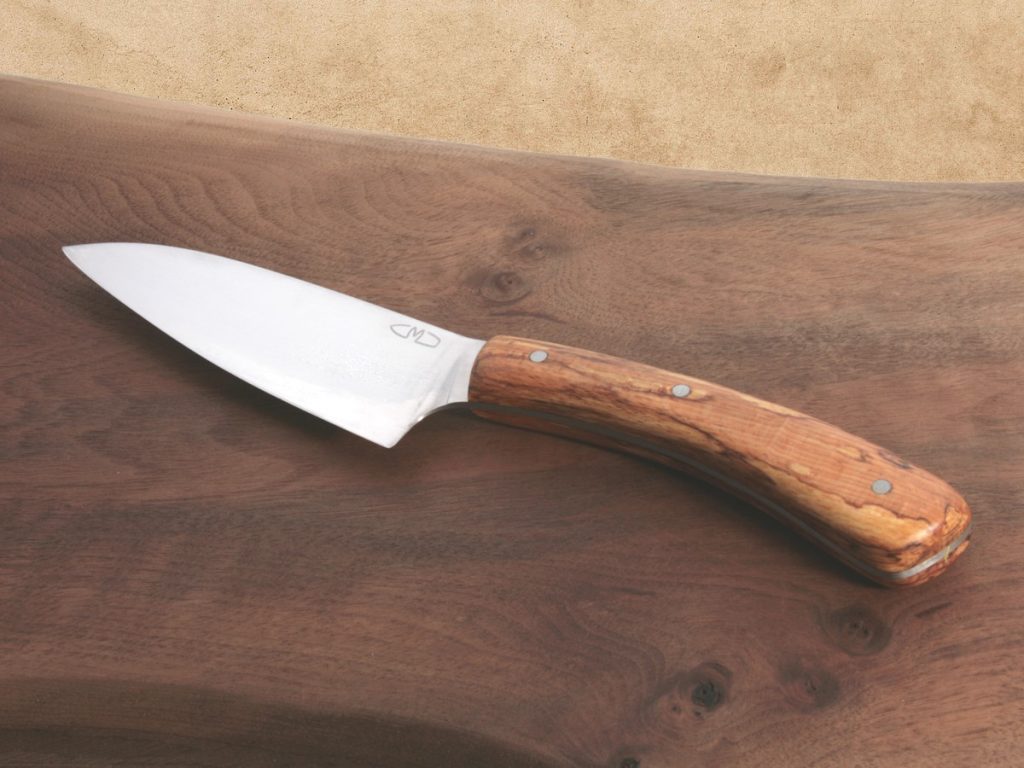 Universelles Kochmesser mit einem Griff aus gestockter Buche, die ich in meinem Brennholzstapel entdeckt habe.